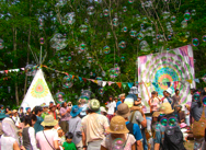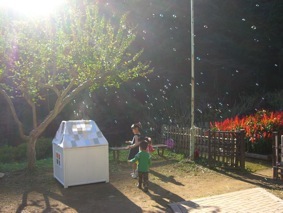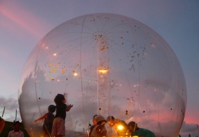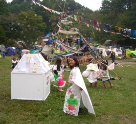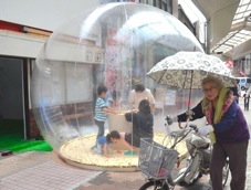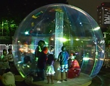 後藤朋美「You are my hope, You are your hope 」と仙石涁人「Time painting」のコラボレーション。内と外との光できらきらと輝くドームと、描いた絵がOHPプロジェクターで壁一面に映し出され空間を彩る、時間に絵を描くワークショップ。宇宙のような光と動く絵の中で、ドームが惑星の様に浮かびます。