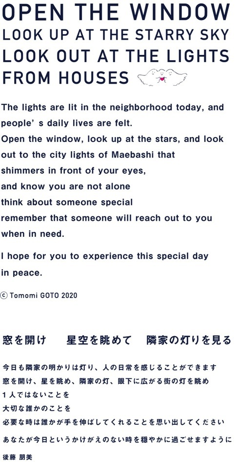 〈前橋望景ポストカード〉前橋市内各所を髙橋匡太がライトアップし、萩原朔太郎の詩を掲載した前橋望景ポストカードシリーズ。アートディレクション&デザインを後藤朋美が、写真を木暮伸也が行い、今までに「前橋公園」「広瀬川」を発行してきました。