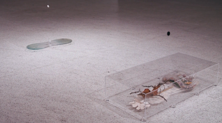 左 「Untitled」2020 繭糸、ガラス、アクリル